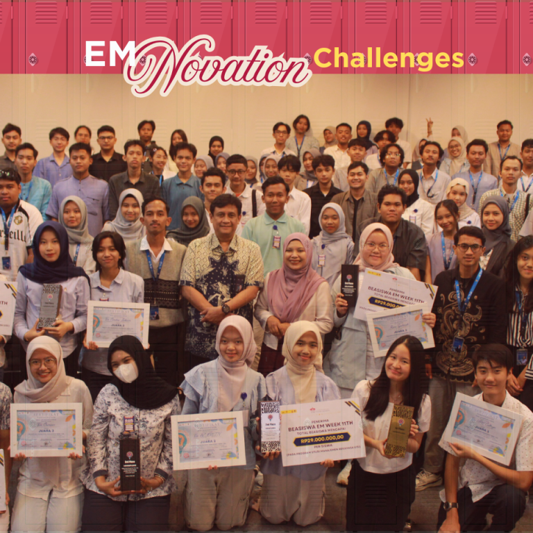 Berangkat dari semangat From Vision to Action, EM Week 12th melangkah lebih jauh dengan menekankan pentingnya pertumbuhan kolektif melalui inovasi dan kolaborasi yang berkelanjutan. Dengan semangat Grow Together, Let’s Make Innovation! EM Week mendorong terciptanya kolaborasi berkelanjutan sebagai fondasi menuju masa depan yang progresif dan berdaya saing.